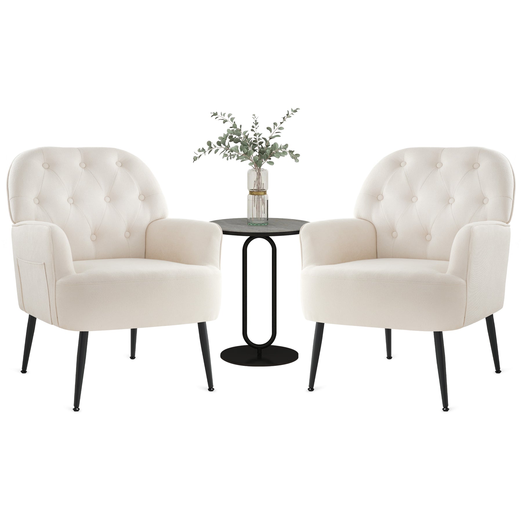 Set of 2 Accent Chair for Living Room, Button Linen Fabric Armchair, Single Sofa Chair with Arms, Metal Legs, Side Corner Chair for Bedroom Reading