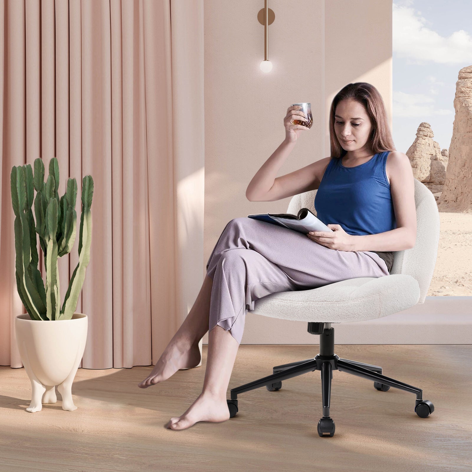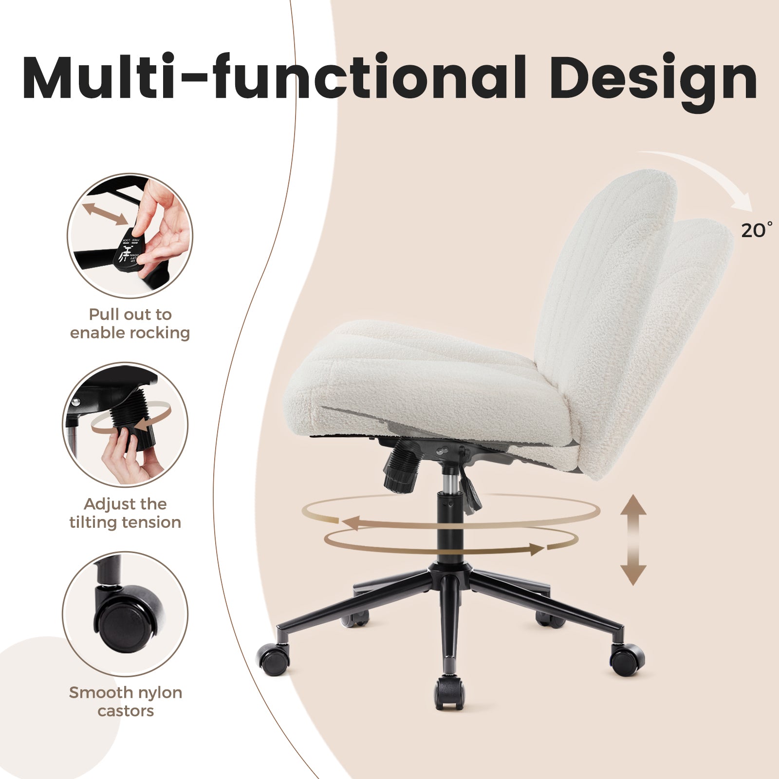 Armless Office Desk Chair with Wheels,Ergonomic Criss Cross Legged Computer Chair with Fabric Padded, Height Adjustable Wide Seat Vanity Chair,Mid Back Task Chair for Home, Bedroom