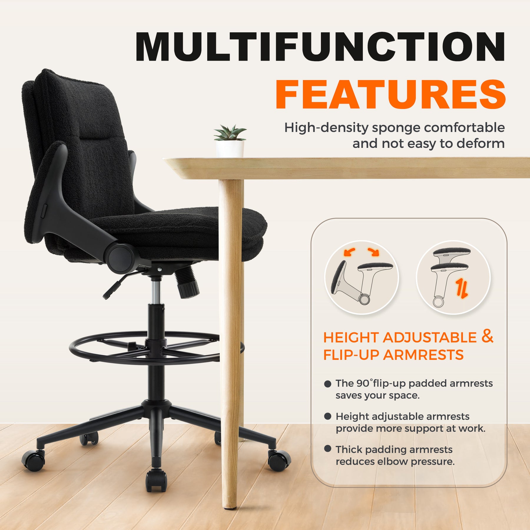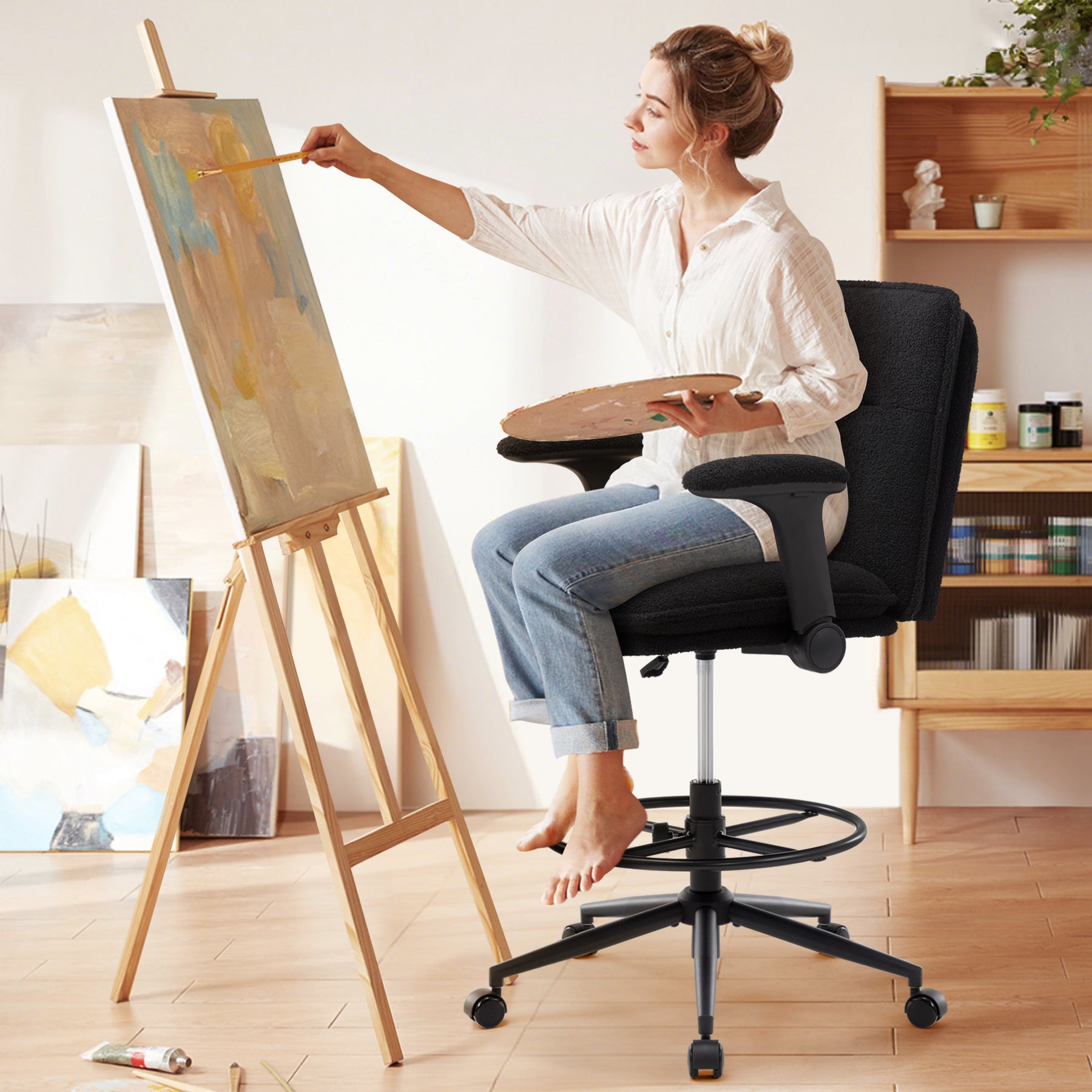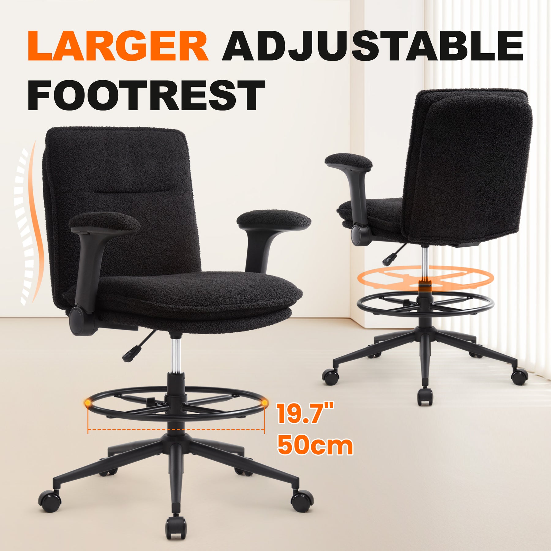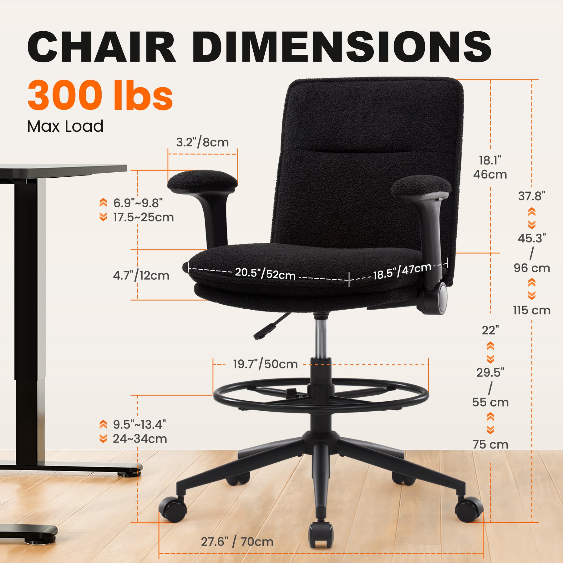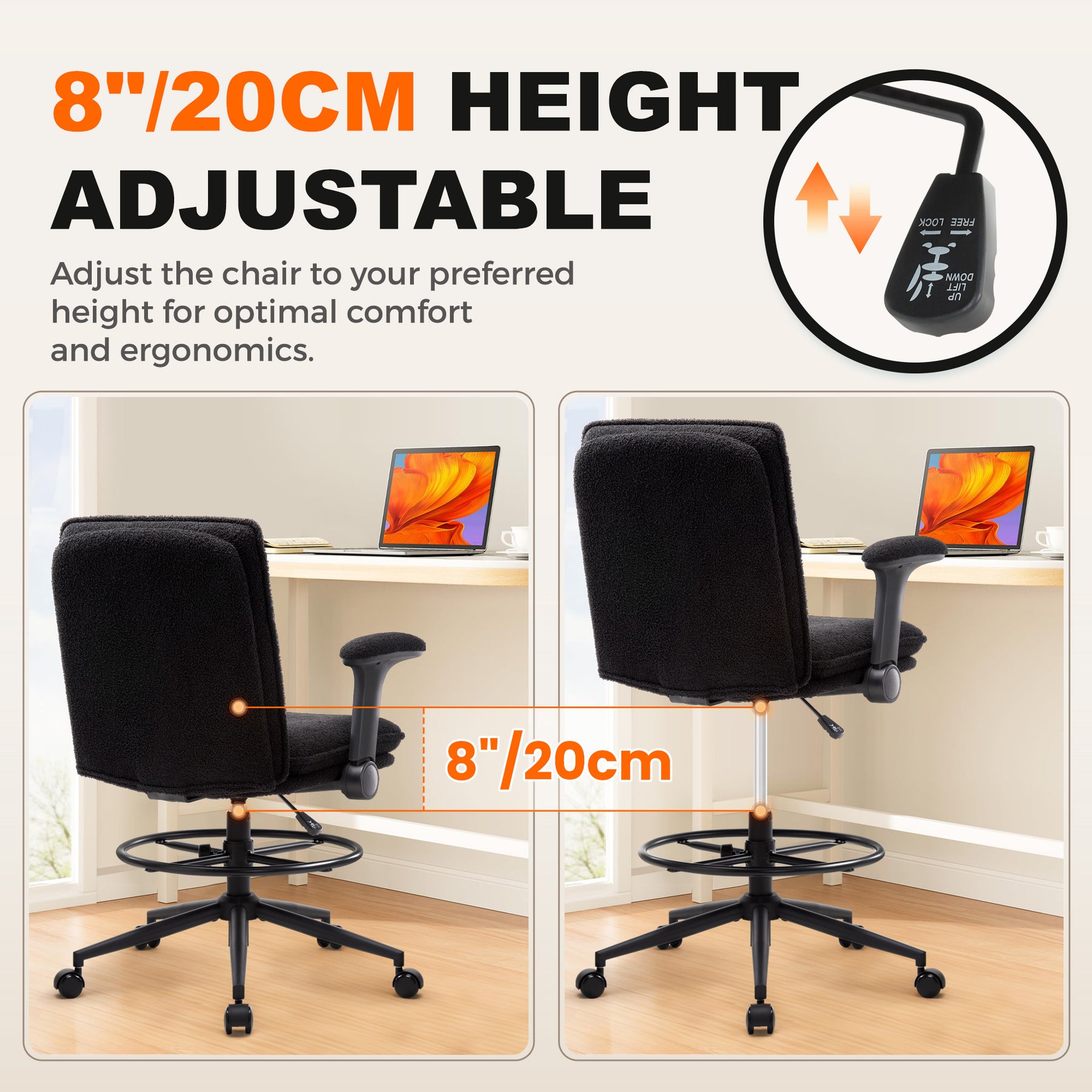 • Ergonomic Office Chair: Featuring an ergonomic design and high backrest, this drafting chair offers optimal lumbar support to relieve fatigue, protect your spine, and ensure comfort during extended use.This chair is perfect for conference rooms, studies, offices, bars, living rooms, and other places