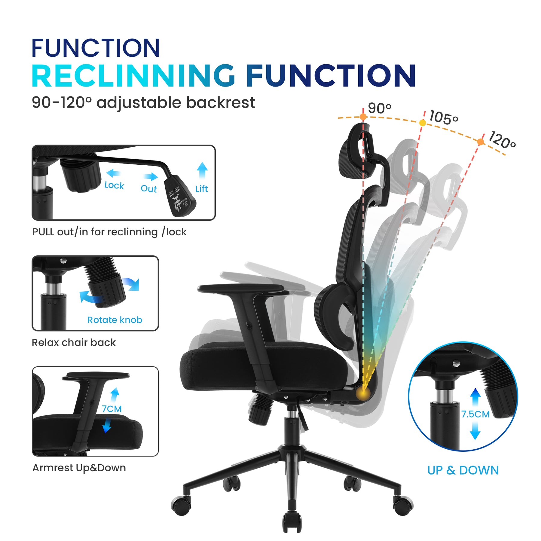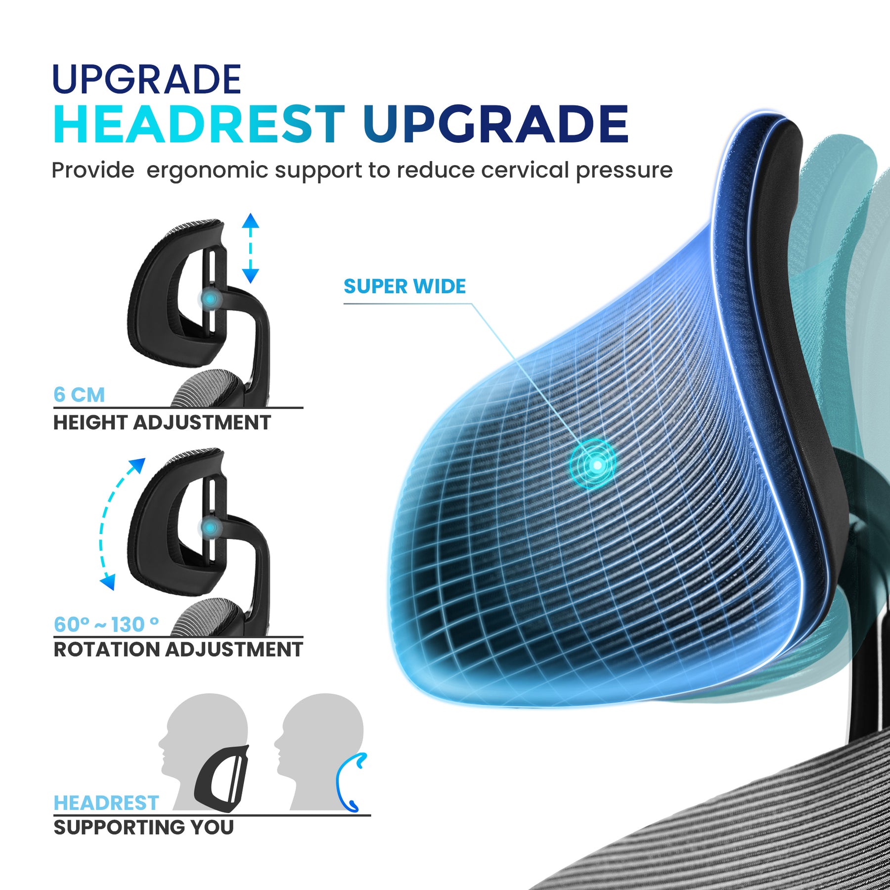 • 【Suitable for Sedentary Office Workers】-- Ergonomic design, the special design of the backrest is closer to the curve of the back. The double-layer segmented backrest provides multi-point support to distribute pressure, creating a 4D wrapped seating experience. Adjustable headrest helps alleviate neck pressure, effectively protecting your cervical spine, spine, and lumbar spine. For those who need to sit for long periods, this chair is your best choice!