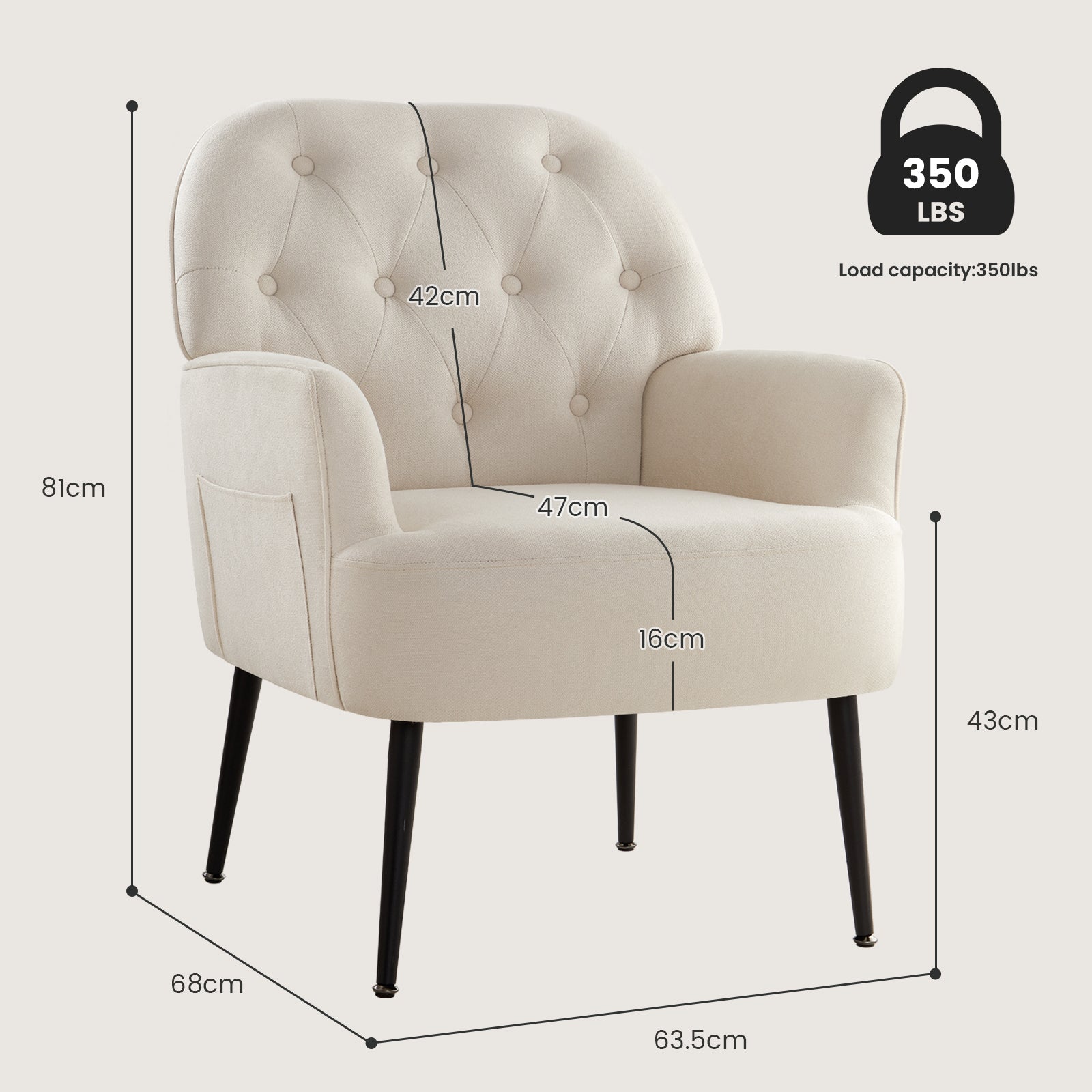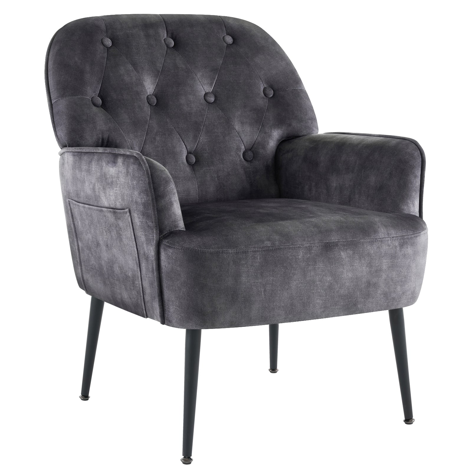Fauteuil en velours avec rangement, fauteuil d'appoint rembourré avec accoudoirs, fauteuil à dossier capitonné, fauteuil canapé simple avec pieds en métal, fauteuil de salon pour salon, balcon, salle de réception