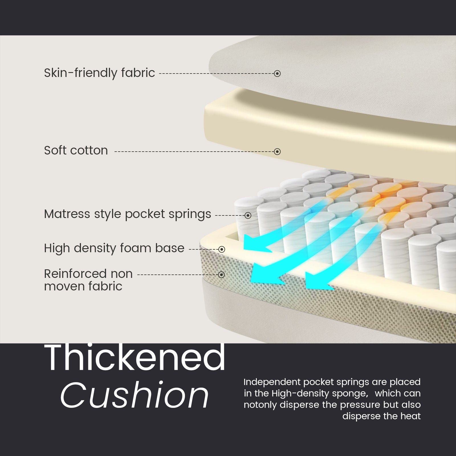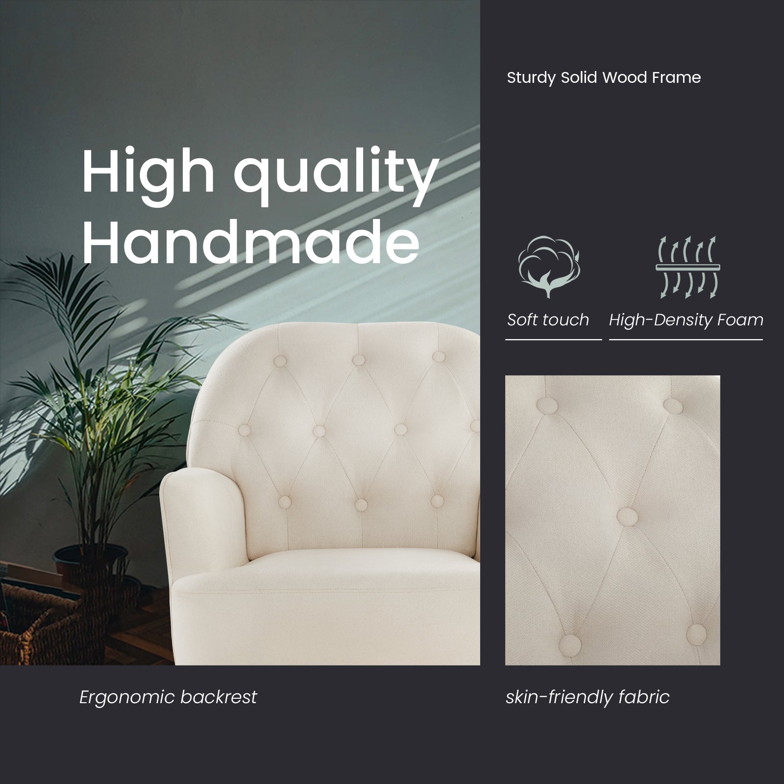 Coussin confortable : L'assise de ce fauteuil est remplie de mousse haute densité et équipée d'un pack de ressorts. Avec une épaisseur de 6,6, une largeur de 26,77 et une profondeur de 15, la taille plus profonde et plus grande assure la douceur et le confort du coussin, permettant une excellente résilience et une résistance à la déformation. Le tissu en velours doux avec une surface agréable pour la peau vous offre un confort supplémentaire, et le rembourrage en éponge doux et suffisant vous enveloppe dans un monde de douceur.