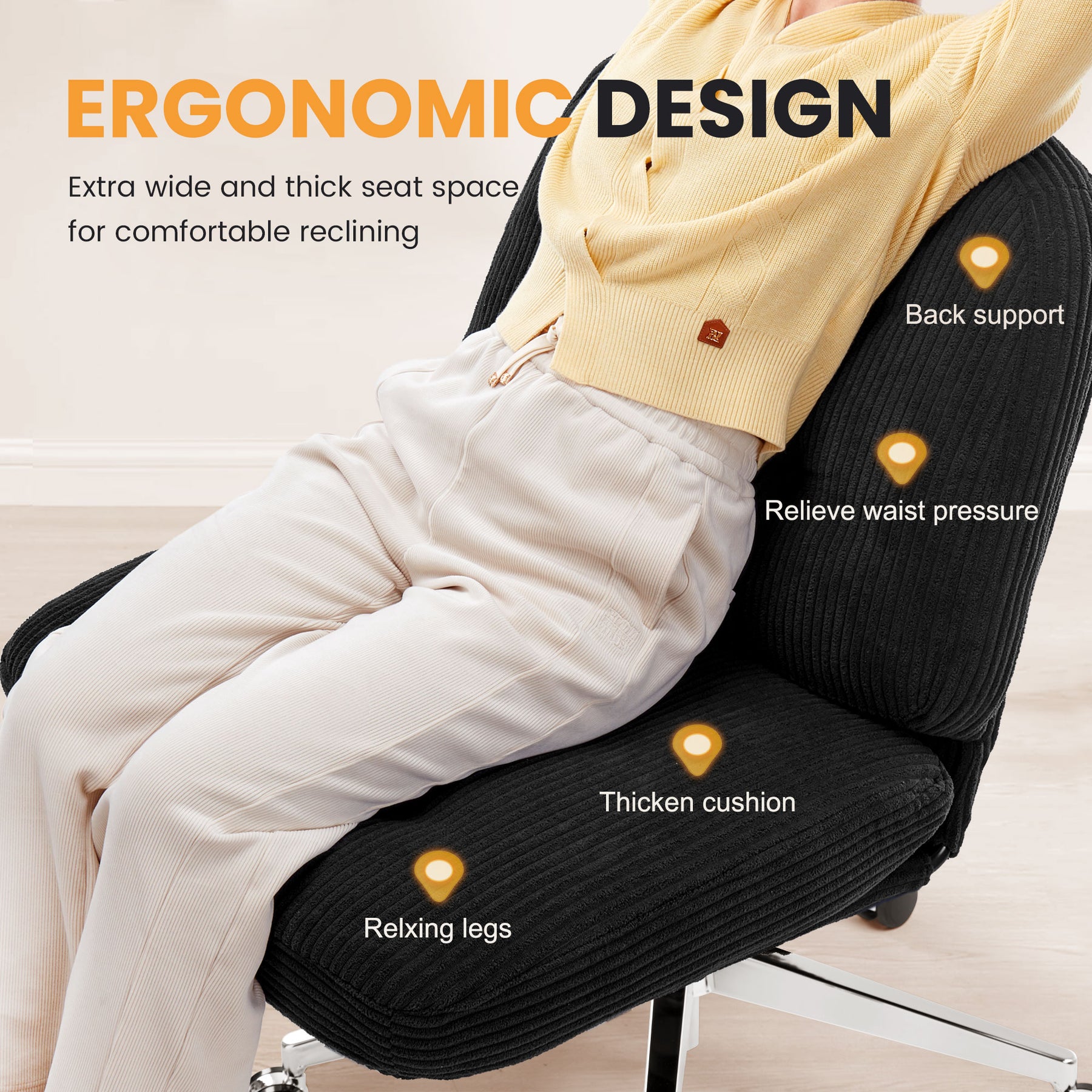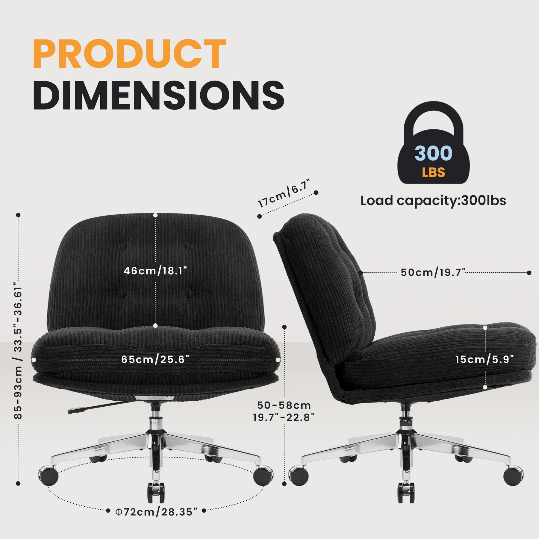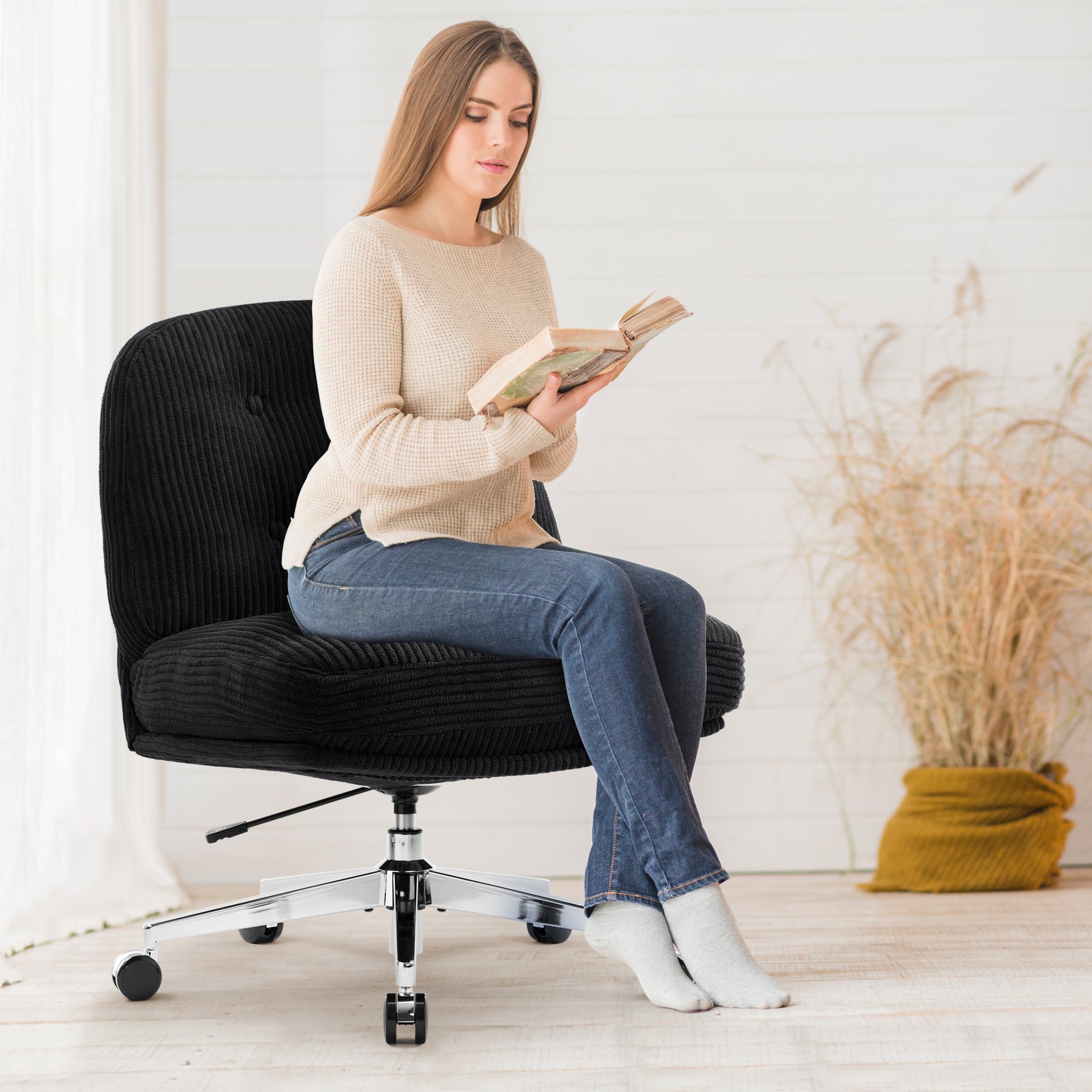 - Soft and comfortable: the armless office chair has a spacious 25.6 inch seat and a 15 cm thick cushion. The backrest and seat are filled with high density foam and wrapped in corduroy fabric, giving you an unparalleled comfort experience. Whether you are reading, working or relaxing, this criss-cross chair provides you with the perfect place to relax