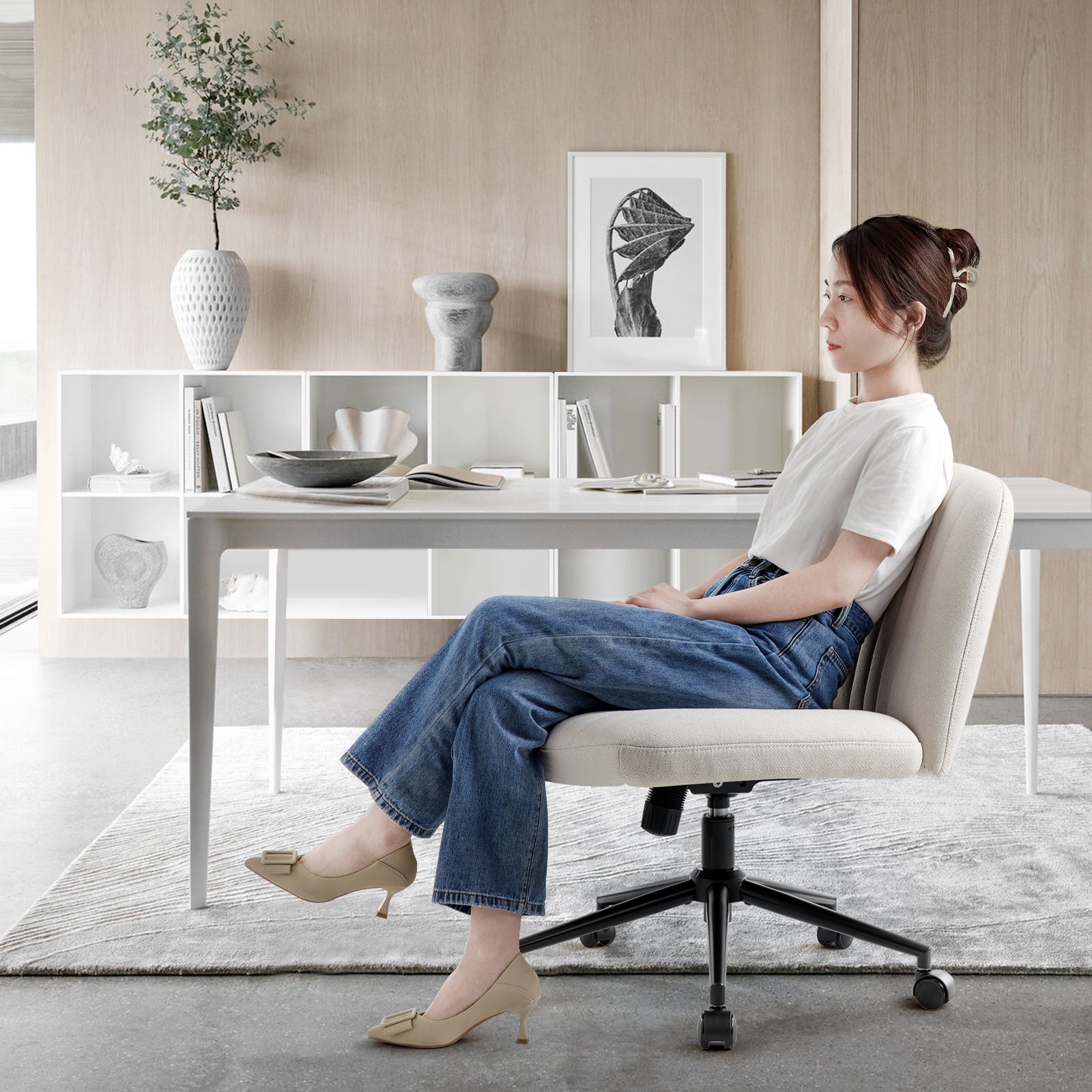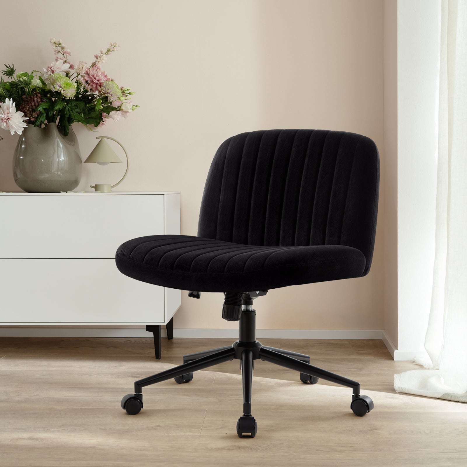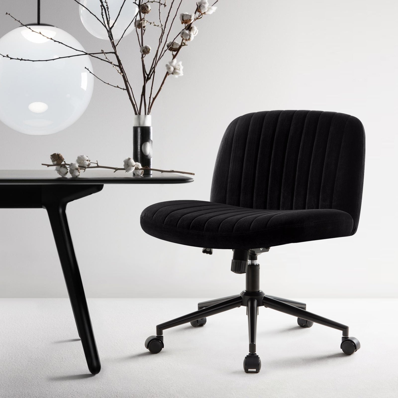 - Modern Armless Desk Chair: Unlike the traditional office chair, we have erased its two armrests, remove all unnecessary decorations, comfort and fashion perfect fusion, easy to match with any decoration, creating a comfortable and elegant atmosphere, perfect for placing in the office, bedroom, study, living room, dormitory or dresser in front of a variety of scenarios.