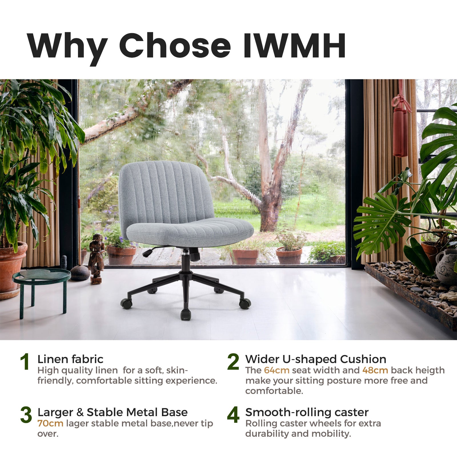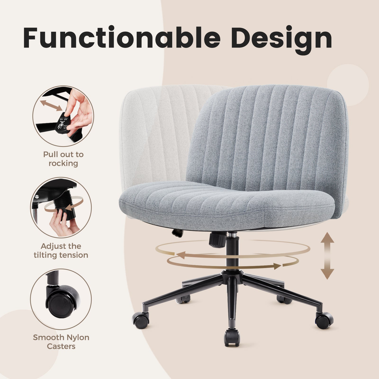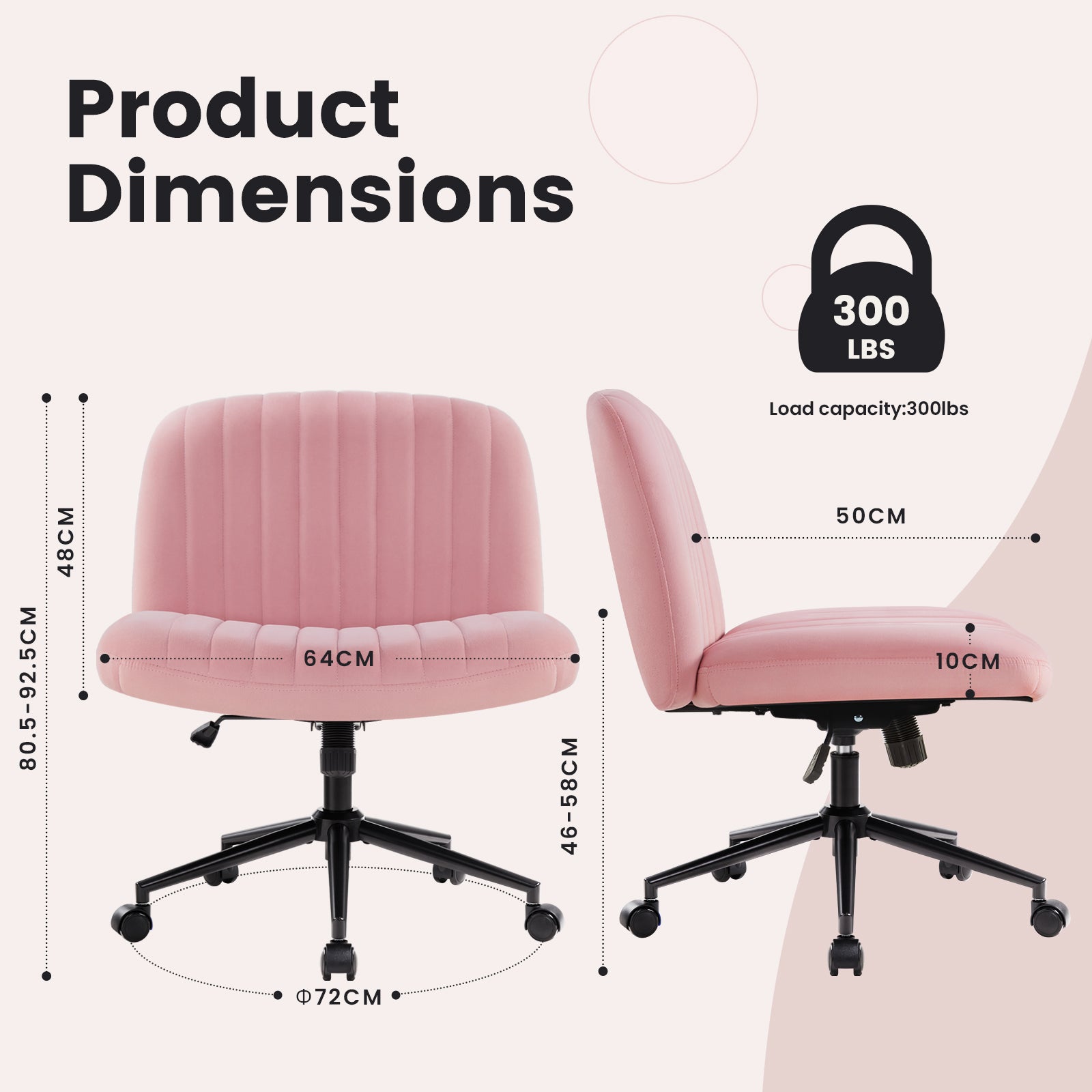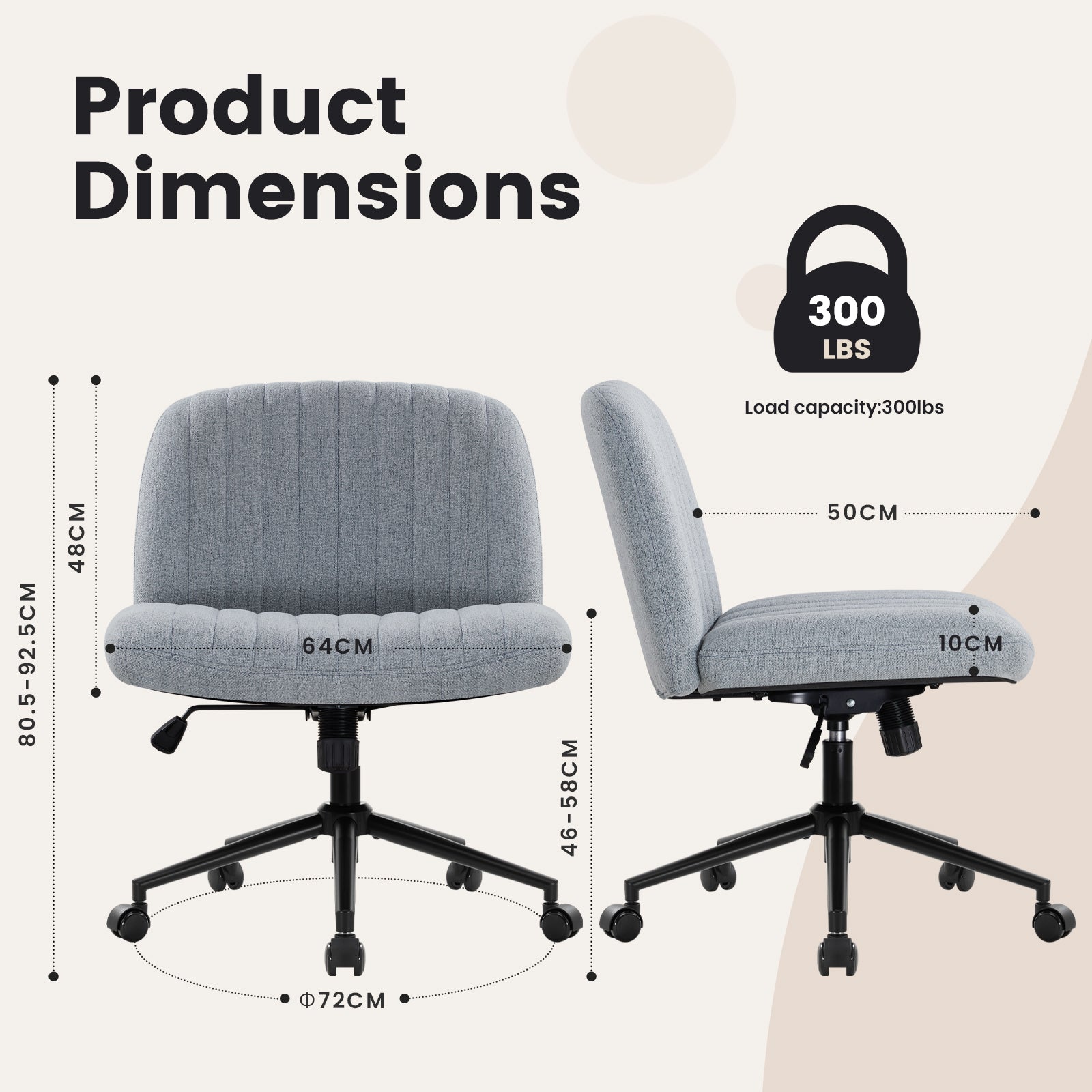 - Modern Armless Desk Chair: Unlike the traditional office chair, we have erased its two armrests, remove all unnecessary decorations, comfort and fashion perfect fusion, easy to match with any decoration, creating a comfortable and elegant atmosphere, perfect for placing in the office, bedroom, study, living room, dormitory or dresser in front of a variety of scenarios.