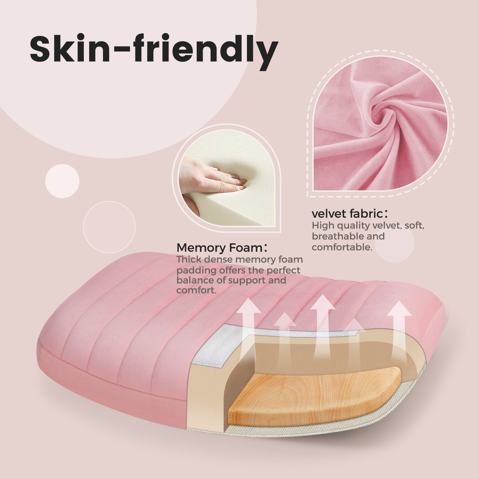 - Materials: Fabric (Beige Linen, Black Velvet, Pink Velvet, Grey Linen) & Aluminium Alloy